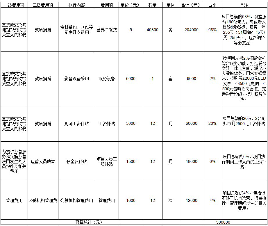 项目预算表